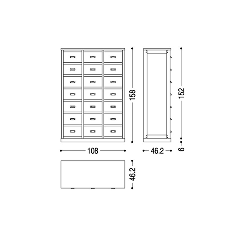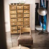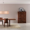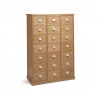 Kommode mit 21 Massivholz-Schubladen mit Schwalbenschwanzverbindung auf Holzführung und einem Rahmen aus Massiv- und Furnierschichtholz.
