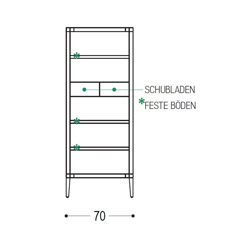 Abmessungen: Breite 70 cm | Tiefe 48 cm | Höhe 177 cm