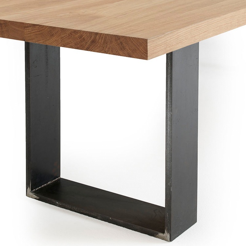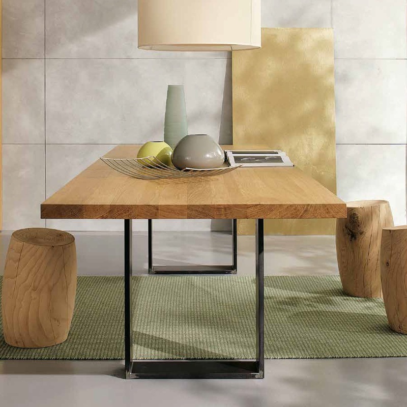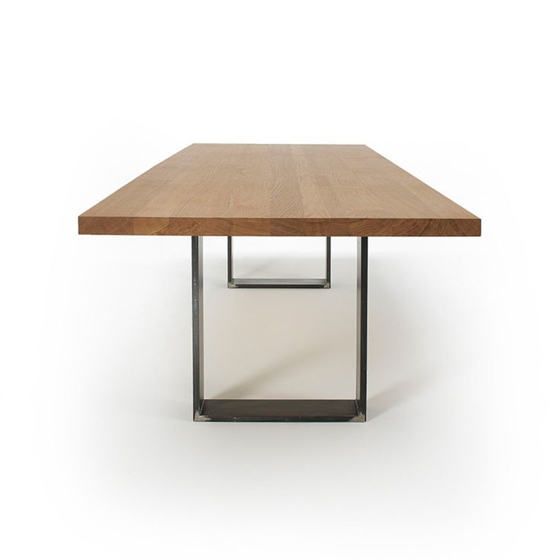 Tischplatte aus verleimten Massivholz-Leisten mit geraden Außenkanten