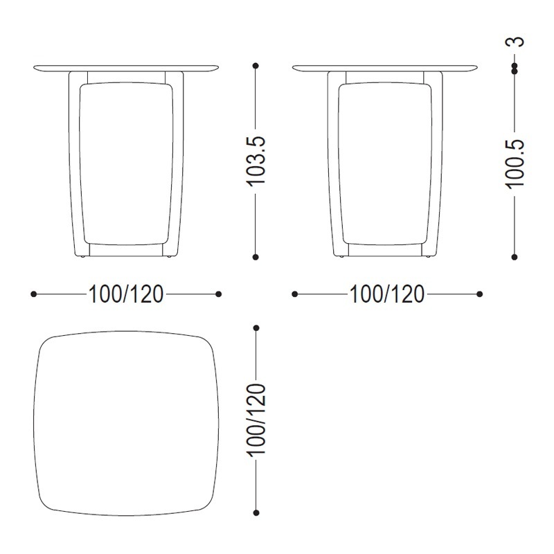 Quadratischer Bartisch Ecken abgerundet