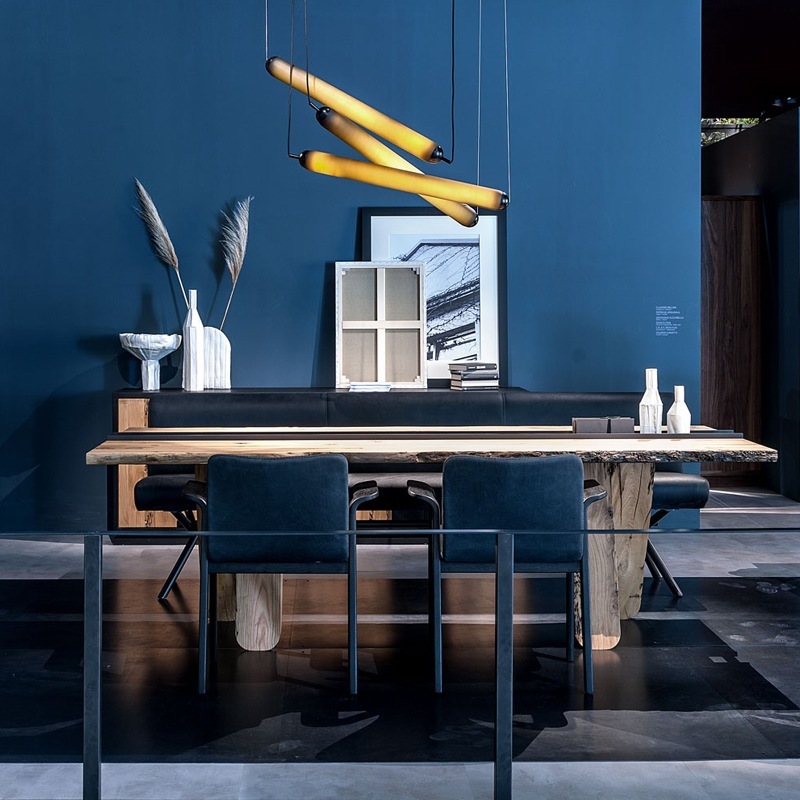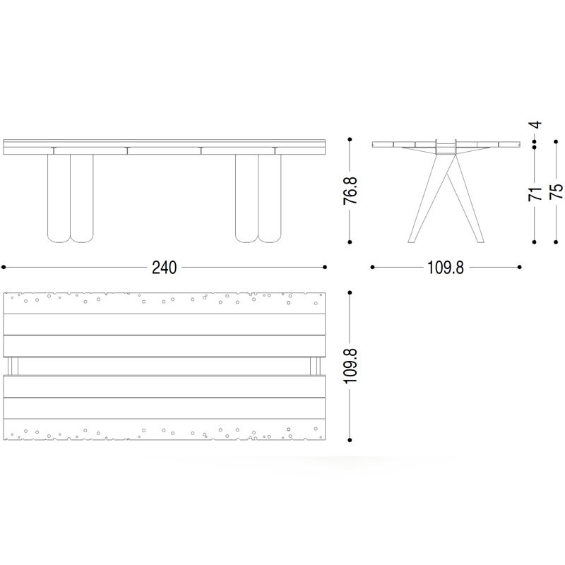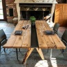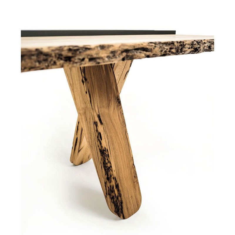 Tischplatte und Tischbeine aus Briccola-Massivholz, das aus abmontierten Pfählen aus der Lagune von Venedig stammte.