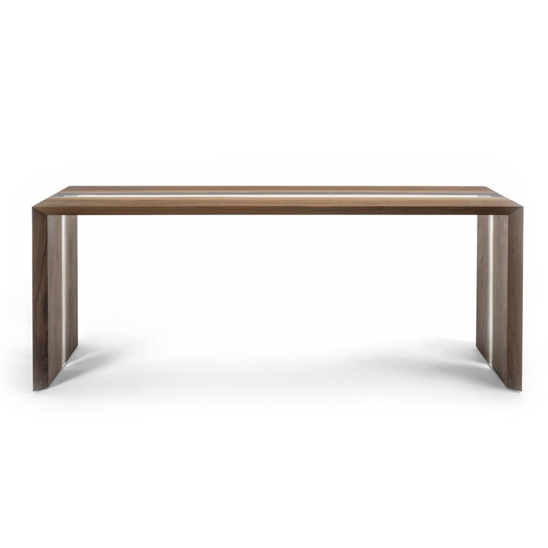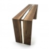 Die Besonderheit dieses Tisches ist eine mittlere Fuge aus transparentem Kunstharz