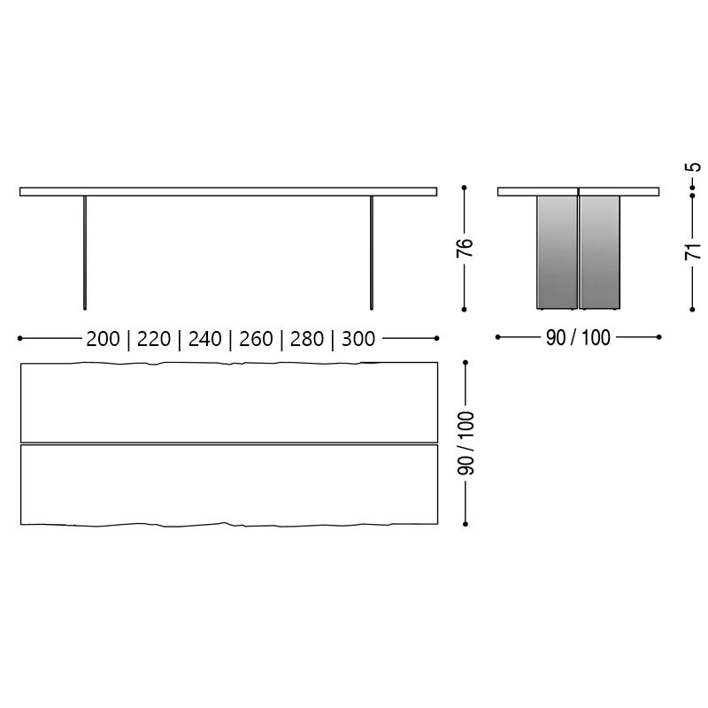 Hinweis: Bedingt durch die Naturkanten, kann die Tischplattenbreite zwischen 90 und 100 cm variieren