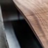 Tischplatte aus zwei Massivholz-Elementen mit offener Mittelfuge und natur-geformten Außenkanten Naturkanten
